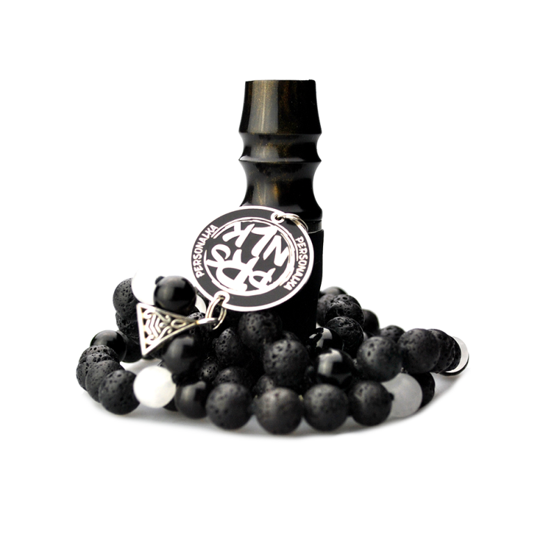 Персональный мундштук Personalka Stone с бусами из натурального камня (Чёрный, Золото)
